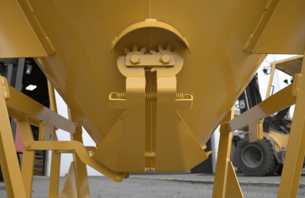 The auto-closing gate system allows precise control over concrete discharge, automatically securing contents after pouring to minimize spillage and enhance safety.