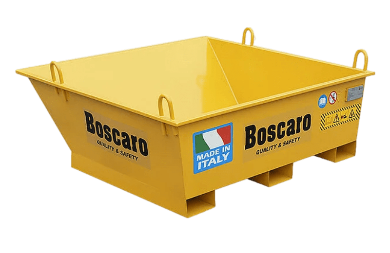 Efficiently handle debris with durable, self-dumping bins from Boscaro, ideal for job sites.