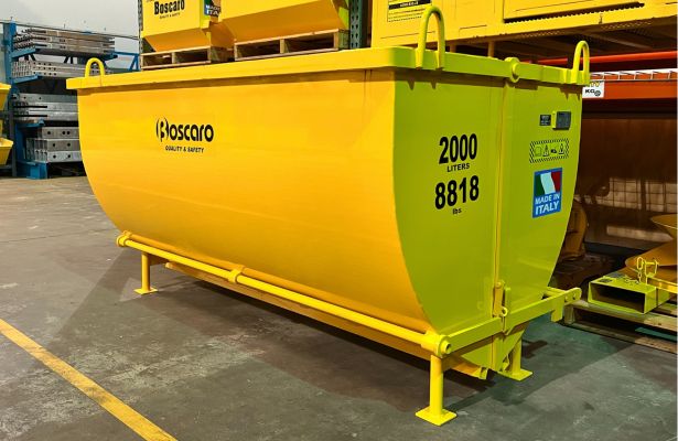 Efficiently manage heavy debris with rugged, large self-dumping bins from Boscaro, perfect for large industrial job sites.
