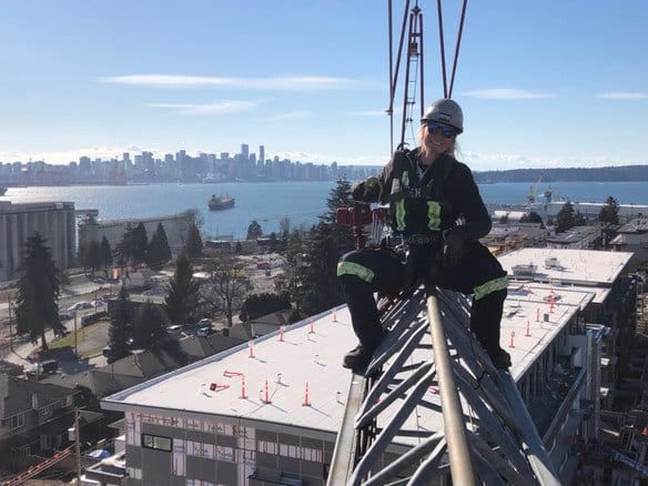 A: When I first started out in construction as a framer 12 years ago, there were never any women on sites. I would show up on site and get funny looks or comments here and there. Once I was able to work for a few hours, people realized that I knew what I was doing, and I quickly gained respect. I worked towards getting my tower crane ticket in 2015 by fighting tooth and nail to get seat time. A lot of crane owners and trade foreman wouldn’t let me go up in the crane to practice. Being a woman was my biggest setback because of the assumption I didn’t know how to operate heavy equipment. Eventually all the hard work paid off and in 2016 I became a fully certified tower crane operator. My passion for cranes led me to Bigfoot, where I am now a crane technician, learning to erect and dismantle cranes, as well as service and repair them.