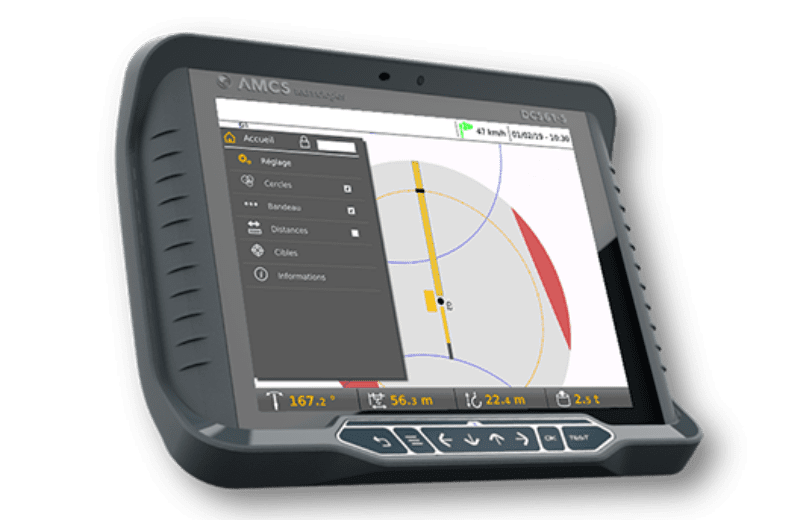 The AMCS DCS 61-S is a real-time anti-collision and zoning system designed to prevent collisions and manage crane operations by tracking crane movements and proximity to obstacles.